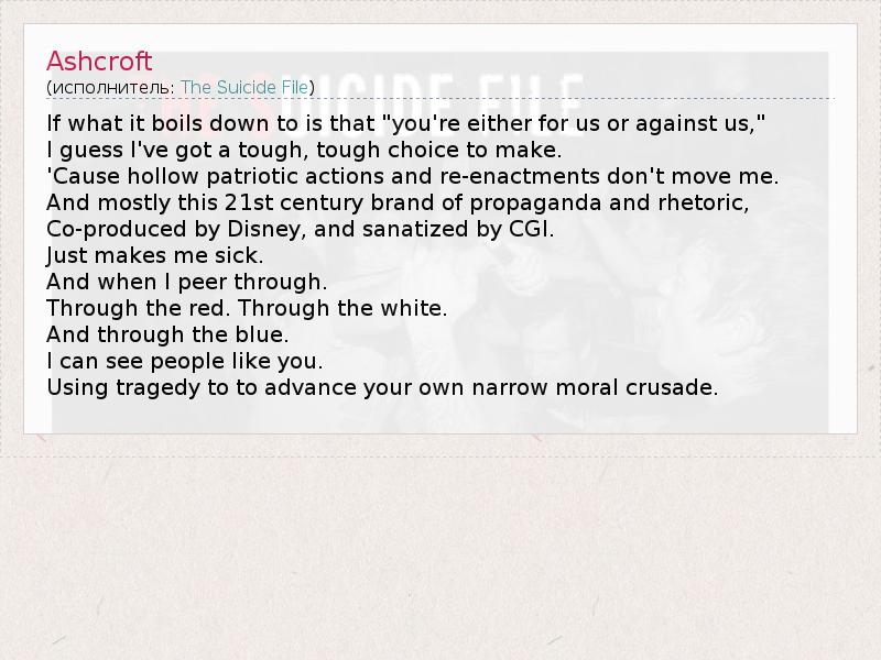 А как ты думаешь, о чем песня "Ashcroft" ?