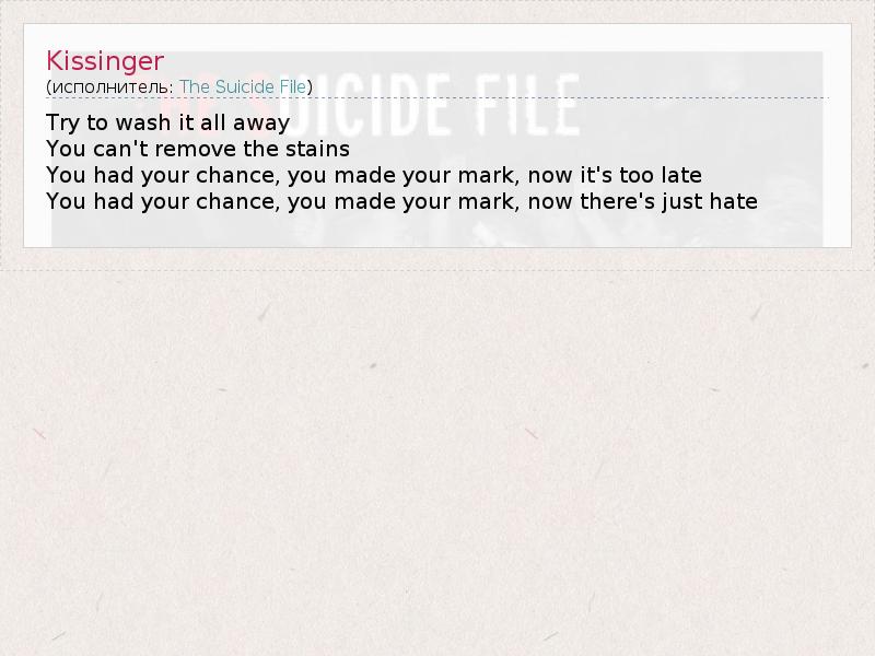 Это интересно:Группа появилась в 2001-ом году стараниями 2-ух экс-участников The Hope Conspiracy. Существовали всего два года, выпустили несколько релизов, но тем не менее оставили след в истории и полюбились многим, прежде всего за счет довольно оригинального звучания, отличной подачи на живых шоу и довольно простой но в то же время цепляющей и несущей i-am-pissed-off посыл лирики. После распада несколько раз переиздавали... продолжение