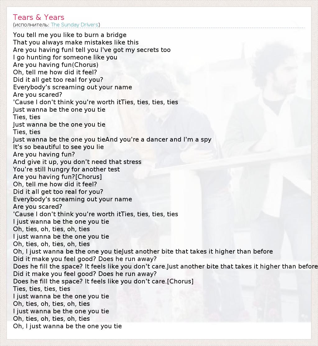 А как ты думаешь, о чем песня "Tears & Years" ?