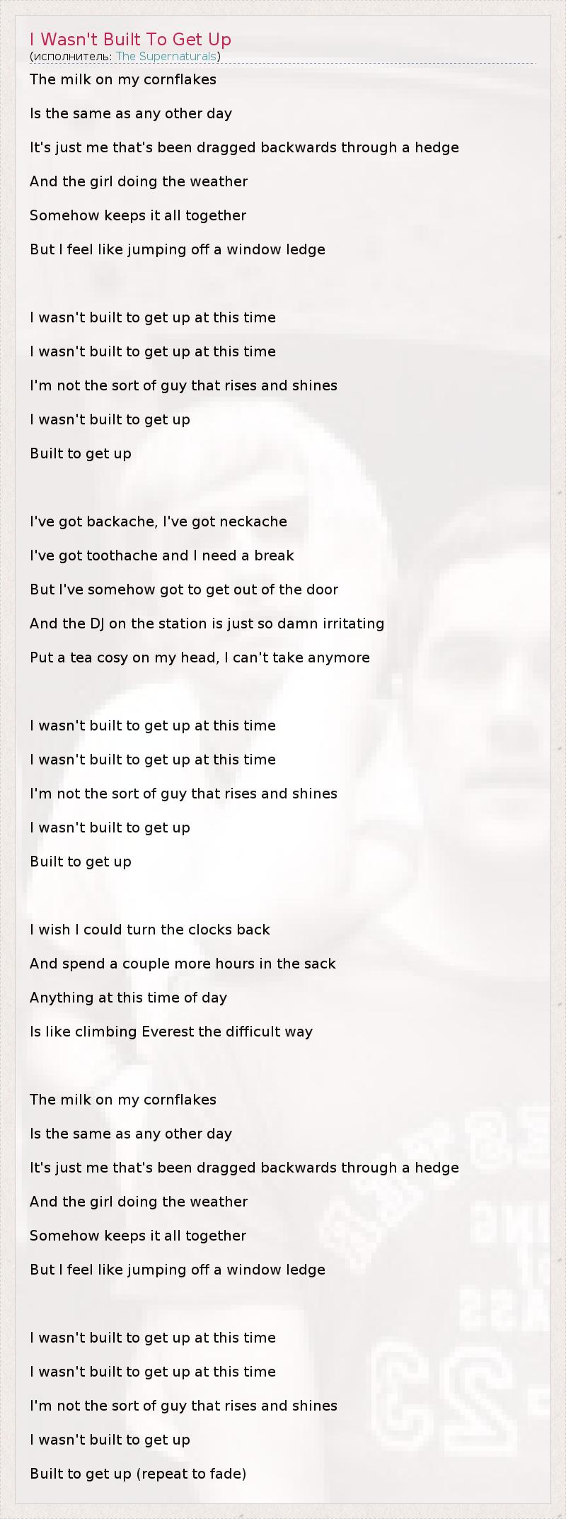 А как ты думаешь, о чем песня "I Wasn't Built To Get Up" ?