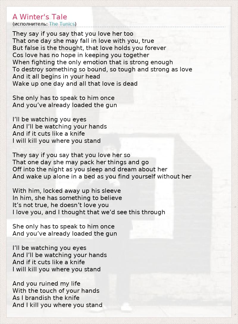 А как ты думаешь, о чем песня "A Winter's Tale" ?