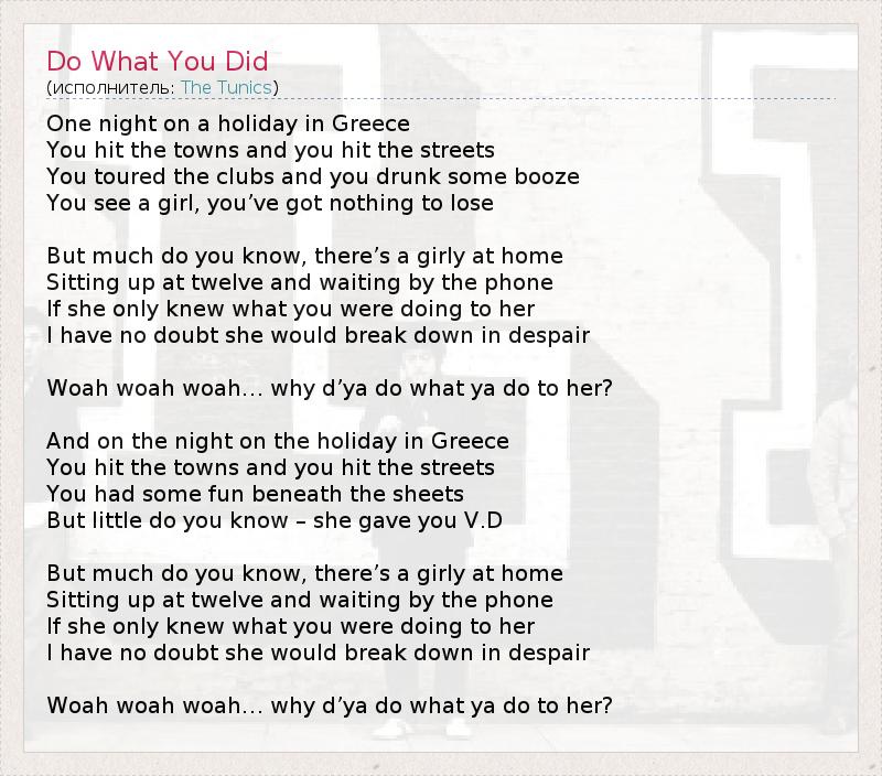 А как ты думаешь, о чем песня "Do What You Did" ?