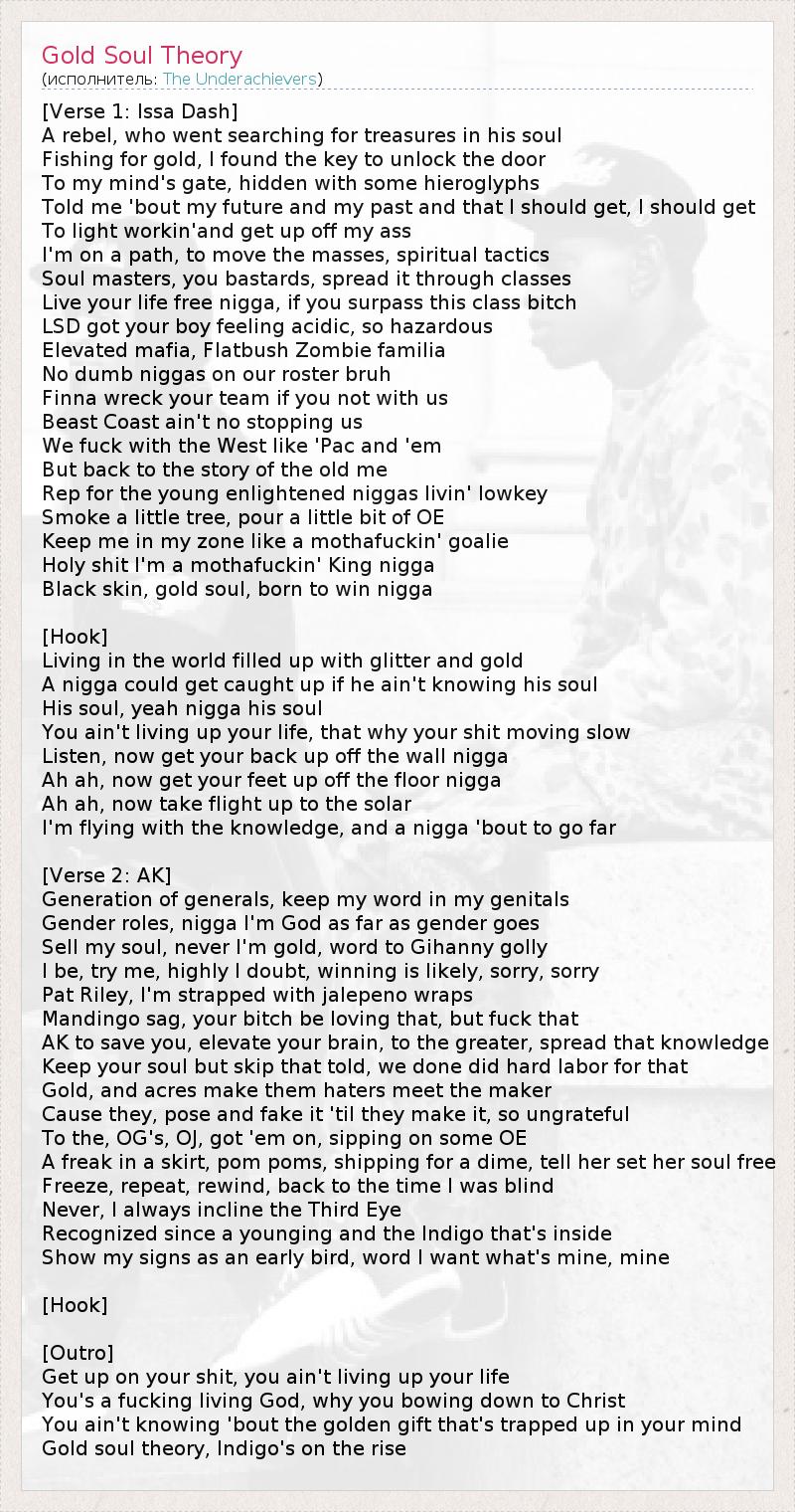 А как ты думаешь, о чем песня "Gold Soul Theory" ?