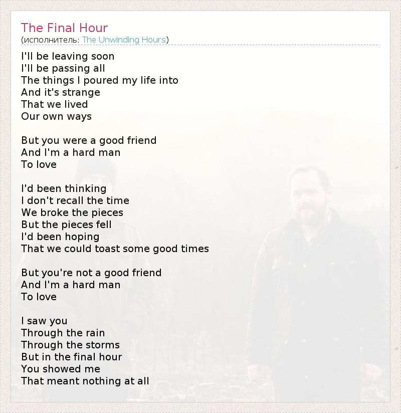 А как ты думаешь, о чем песня "The Final Hour" ?