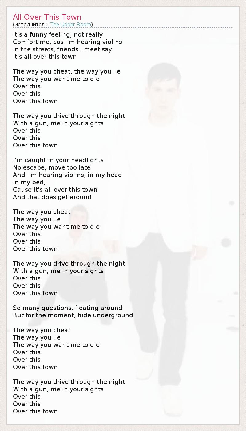 А как ты думаешь, о чем песня "All Over This Town" ?