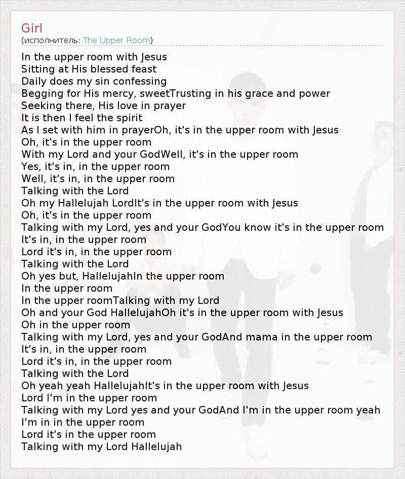Oh and your God HallelujahOh it's in the upper room with Jesus