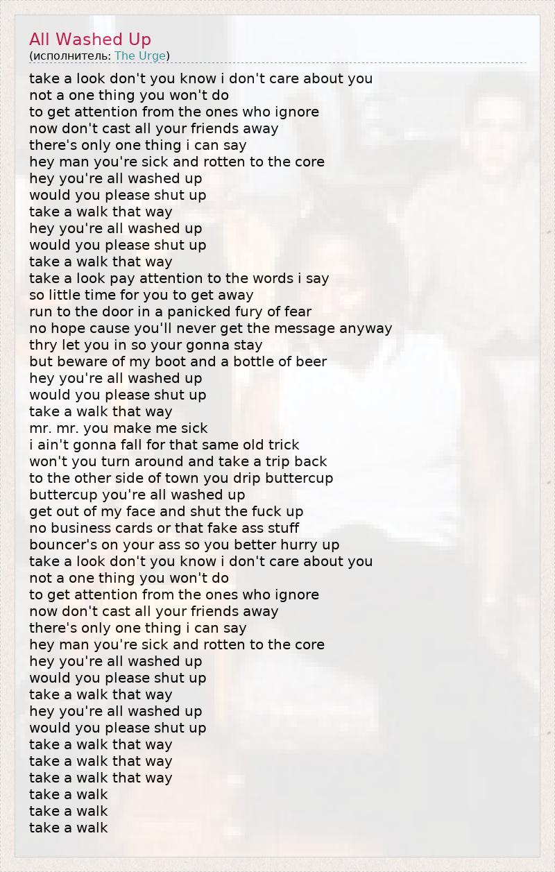 А как ты думаешь, о чем песня "All Washed Up" ?