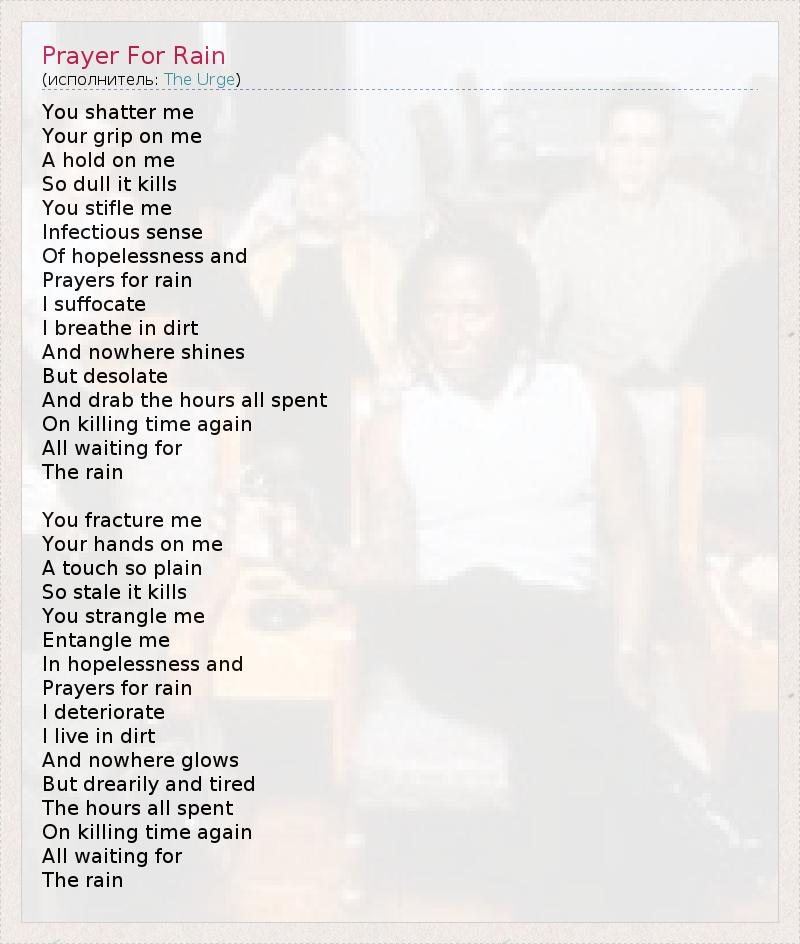 А как ты думаешь, о чем песня "Prayer For Rain" ?