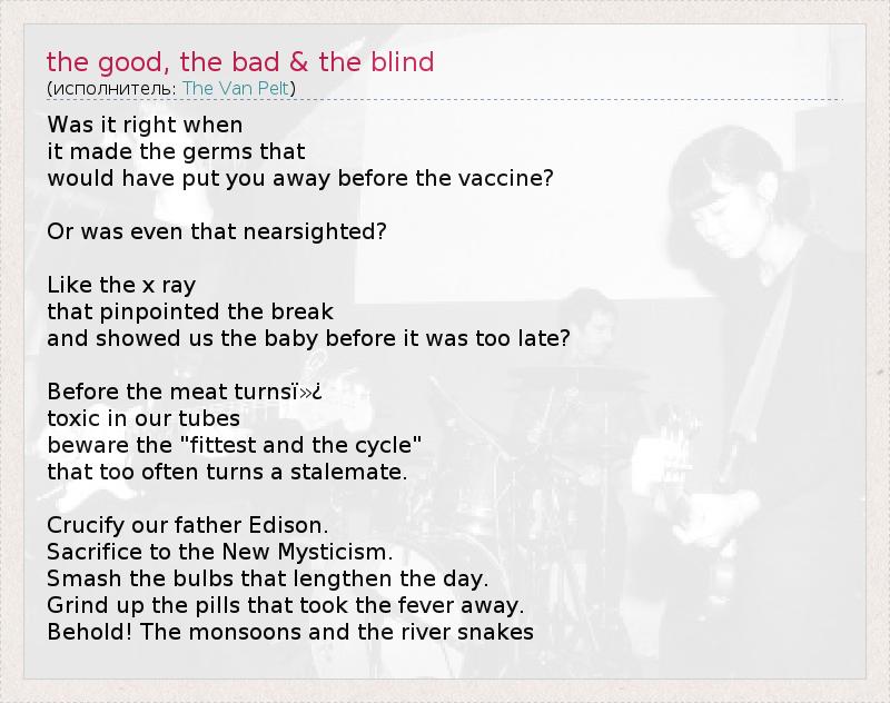 А как ты думаешь, о чем песня "the good, the bad & the blind" ?