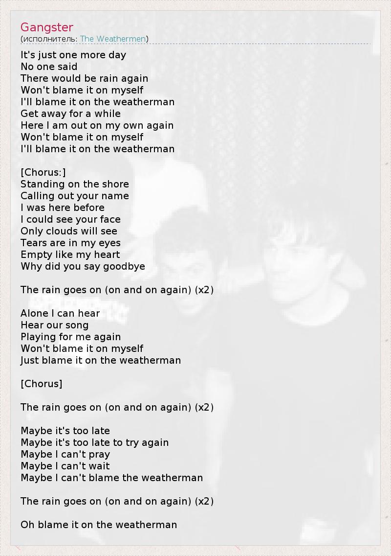 The rain goes on (on and on again) (x2)