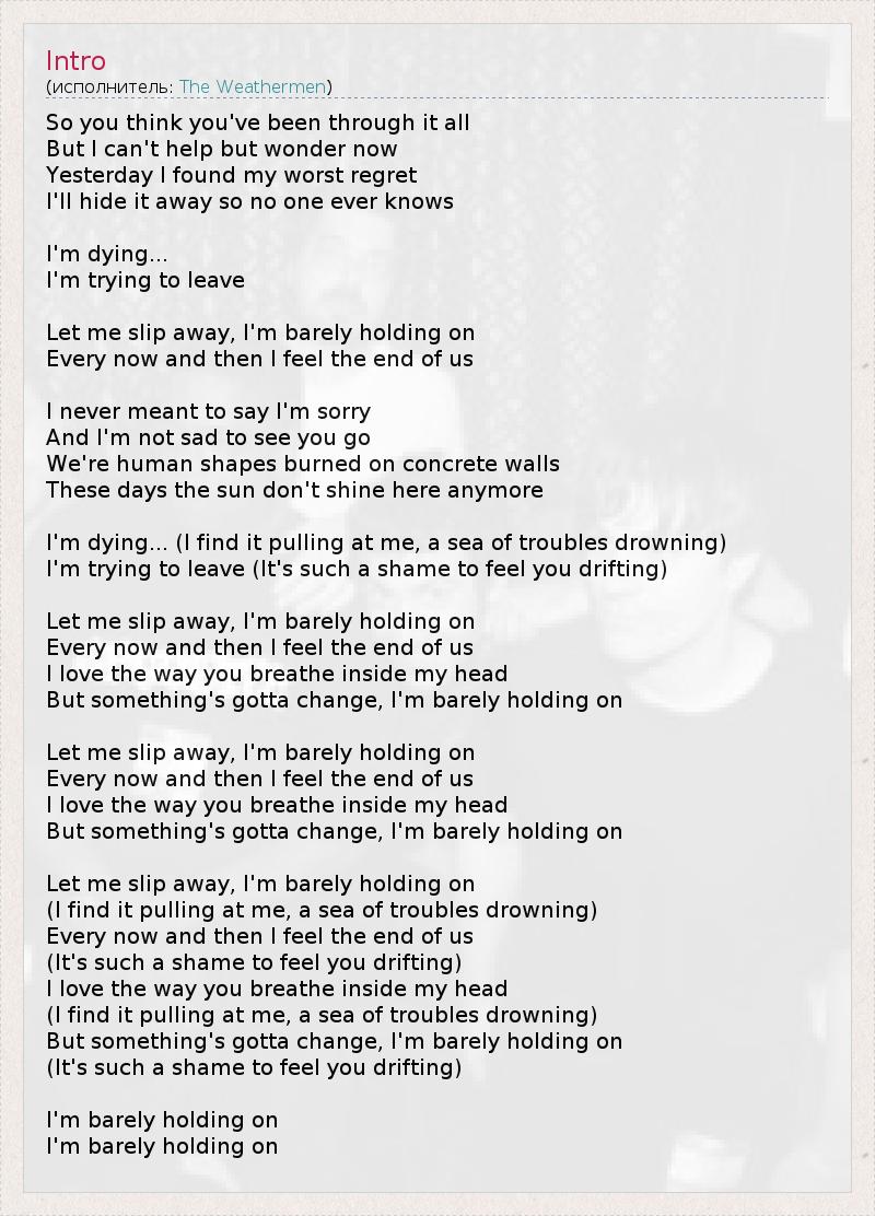 Я пытаюсь уйти (это такой позор, чувствовать, как тебя уносит)