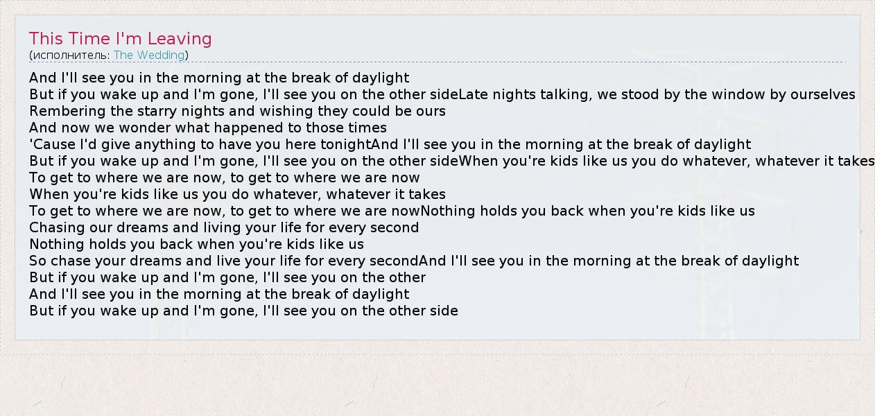 А как ты думаешь, о чем песня "This Time I'm Leaving" ?