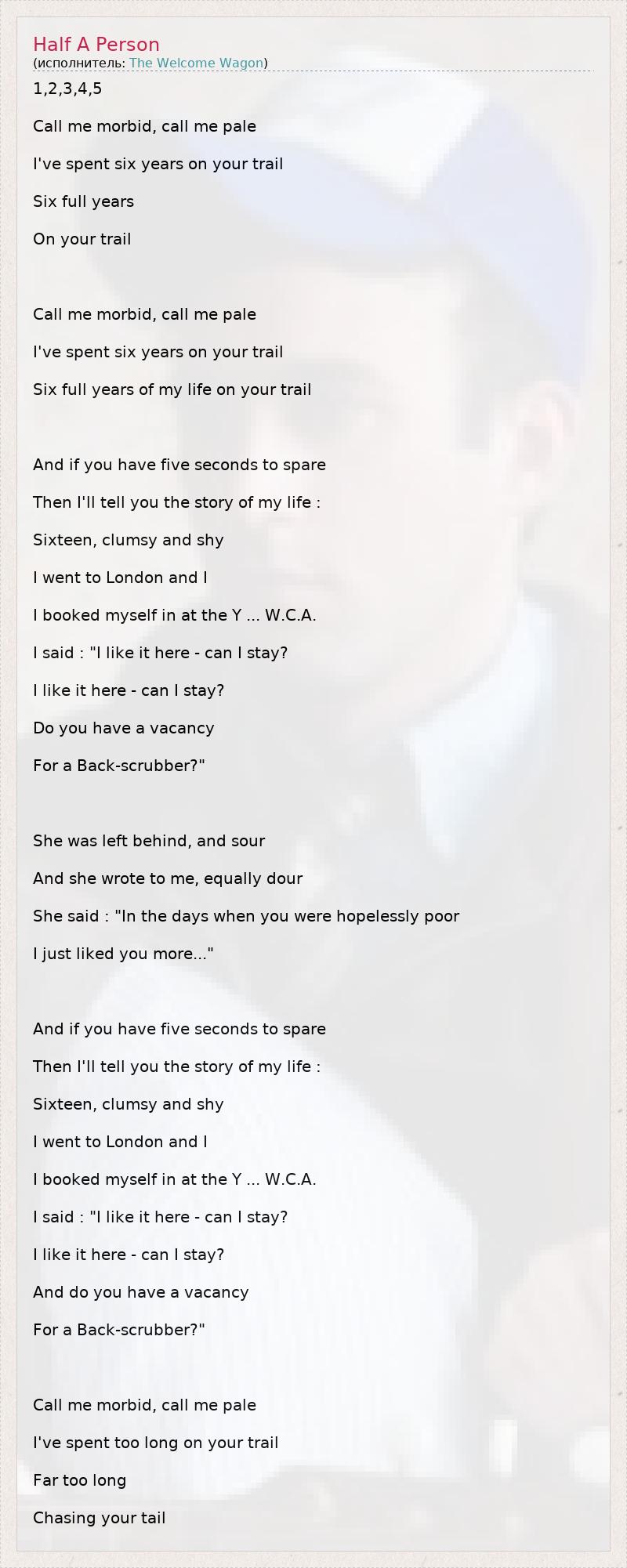 А как ты думаешь, о чем песня "Half A Person" ?
