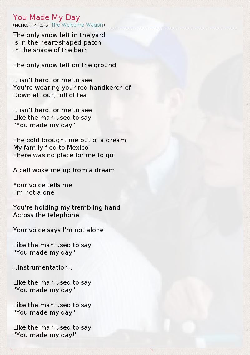 А как ты думаешь, о чем песня "You Made My Day" ?