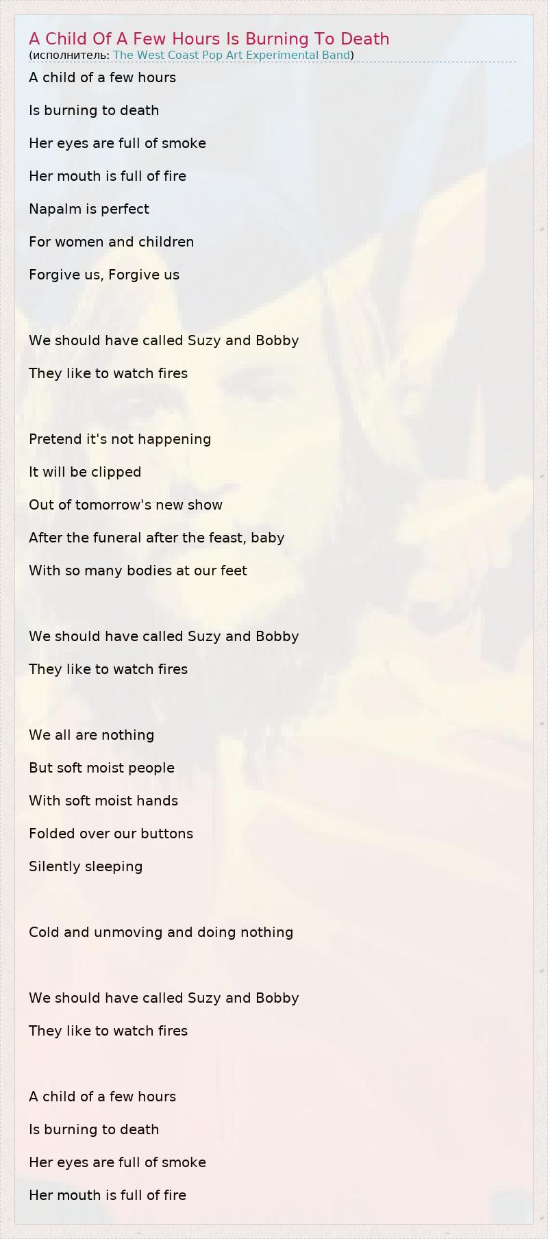 А как ты думаешь, о чем песня "A Child Of A Few Hours Is Burning To Death" ?