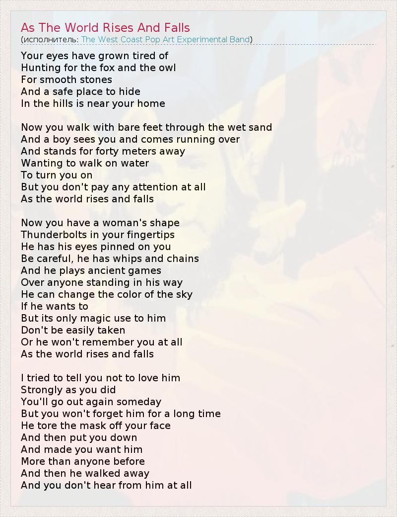 А как ты думаешь, о чем песня "As The World Rises And Falls" ?