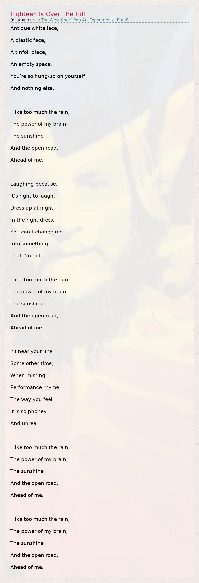 А как ты думаешь, о чем песня "Eighteen Is Over The Hill" ?