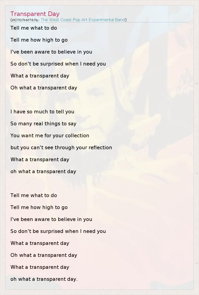 А как ты думаешь, о чем песня "Transparent Day" ?