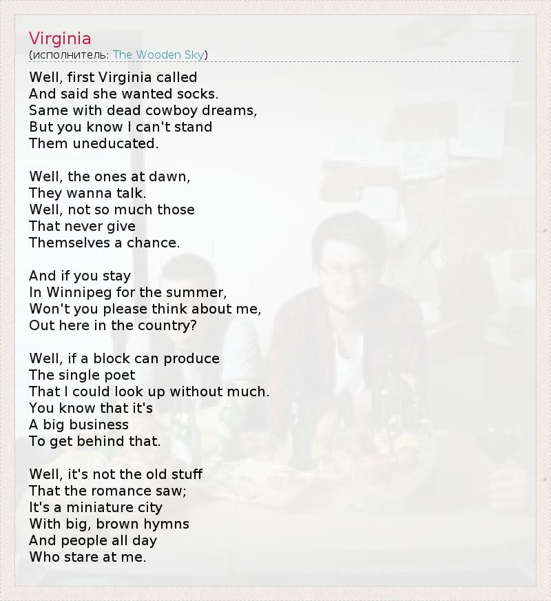 Это интересно:The Wooden Sky - Канадский folk/indie rock группа основана в Торонто, Онтарио. Они создали группу в 2003, которое носило название как Friday Morning's Regret, но изменил свое имя в 2007. Группа состоит: Gavin Gardiner (вокал, гитара), Andrew Wyatt, Simon Walker, Andrew Kekewich, Anissa Hart, Mika Posen, Edwin Huizinga
