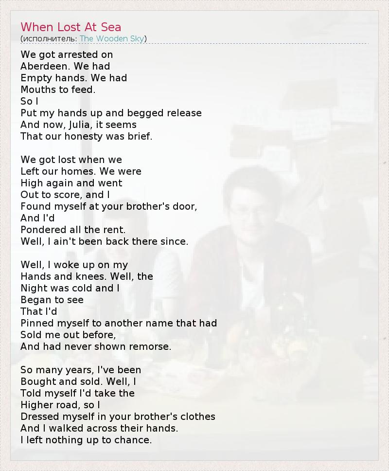 А как ты думаешь, о чем песня "When Lost At Sea" ?