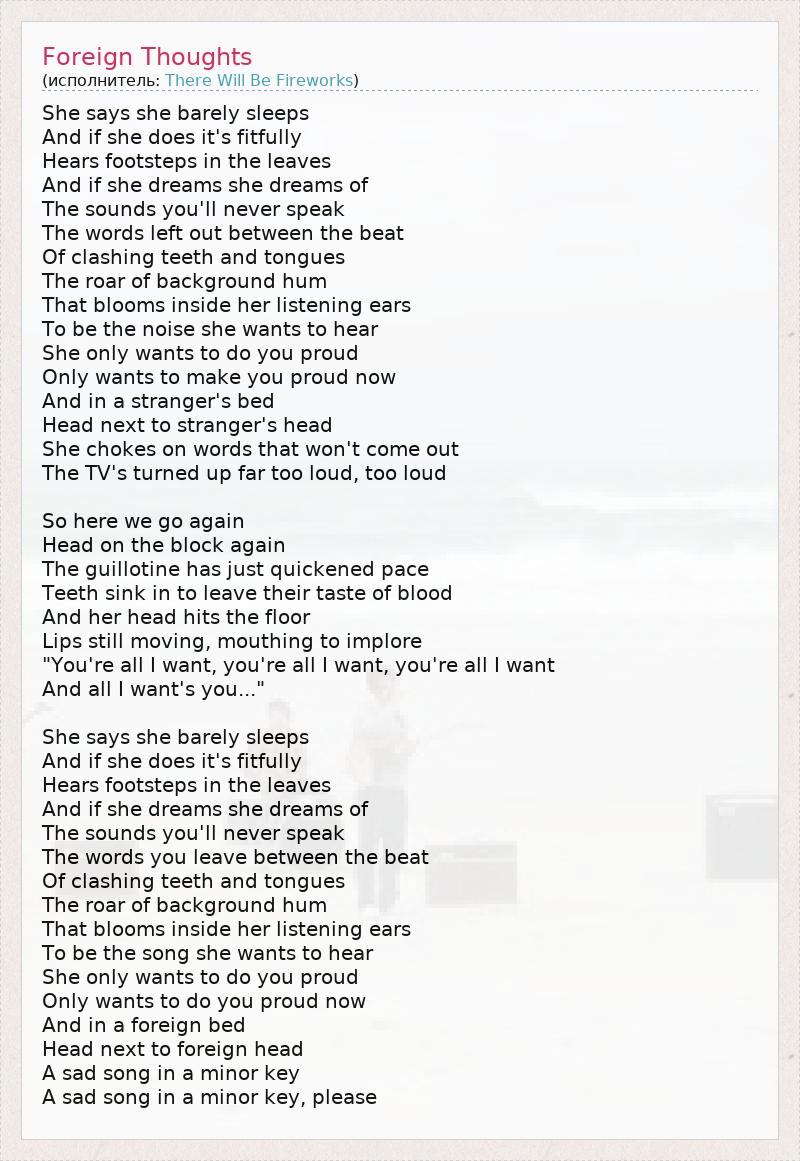 А как ты думаешь, о чем песня "Foreign Thoughts" ?