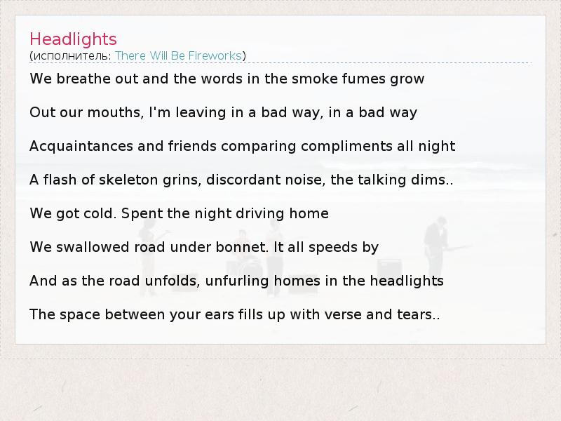 А как ты думаешь, о чем песня "Headlights" ?