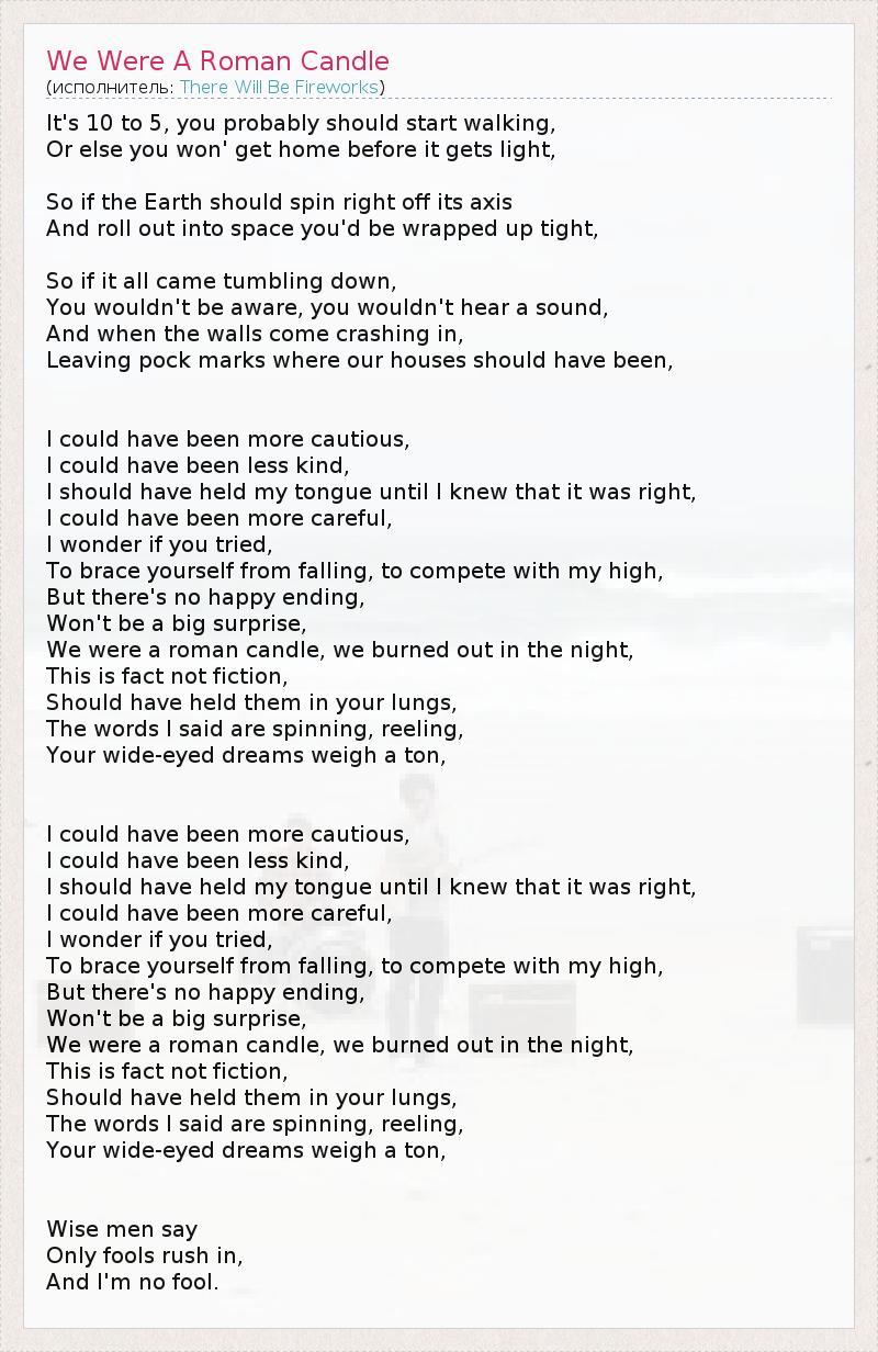 А как ты думаешь, о чем песня "We Were A Roman Candle" ?