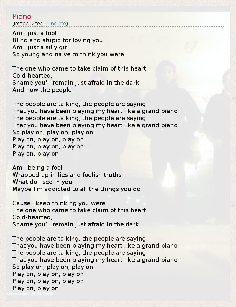 2 - дословно: Что ты играл с моим сердцем, словно [стуча по клавишам] на рояле