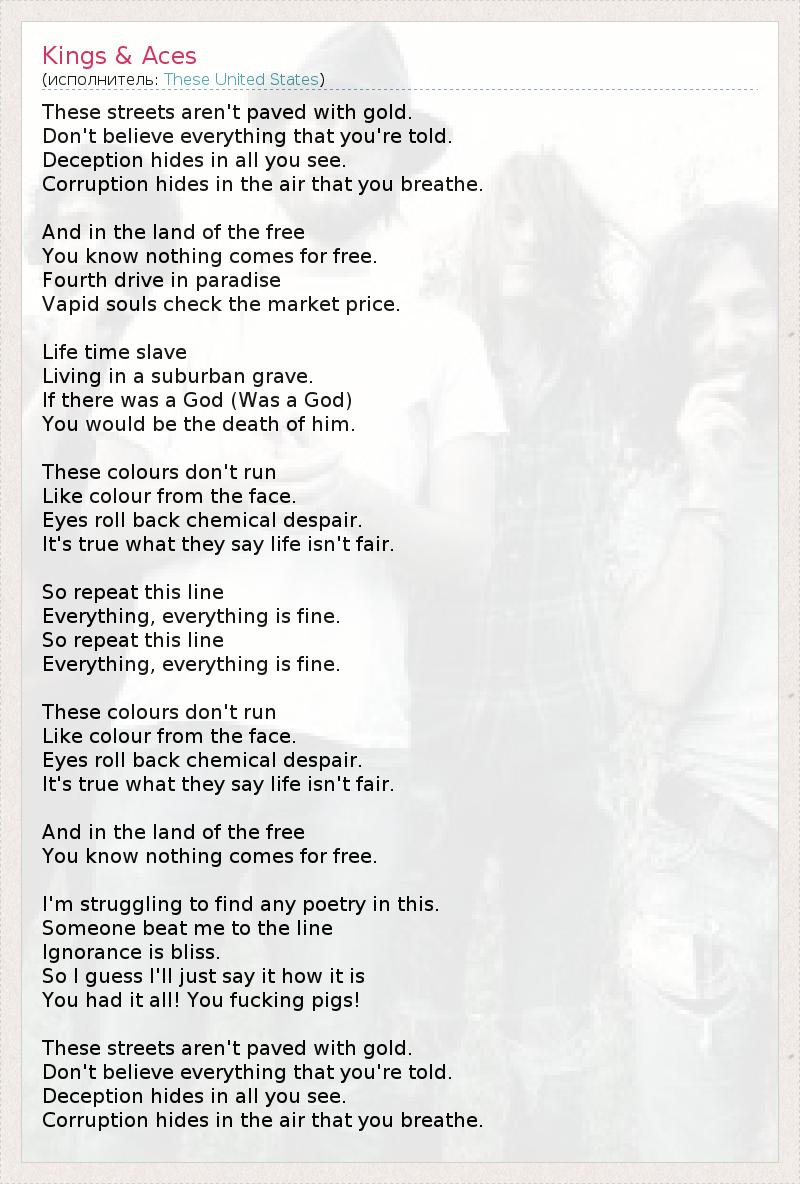 А как ты думаешь, о чем песня "Kings & Aces" ?