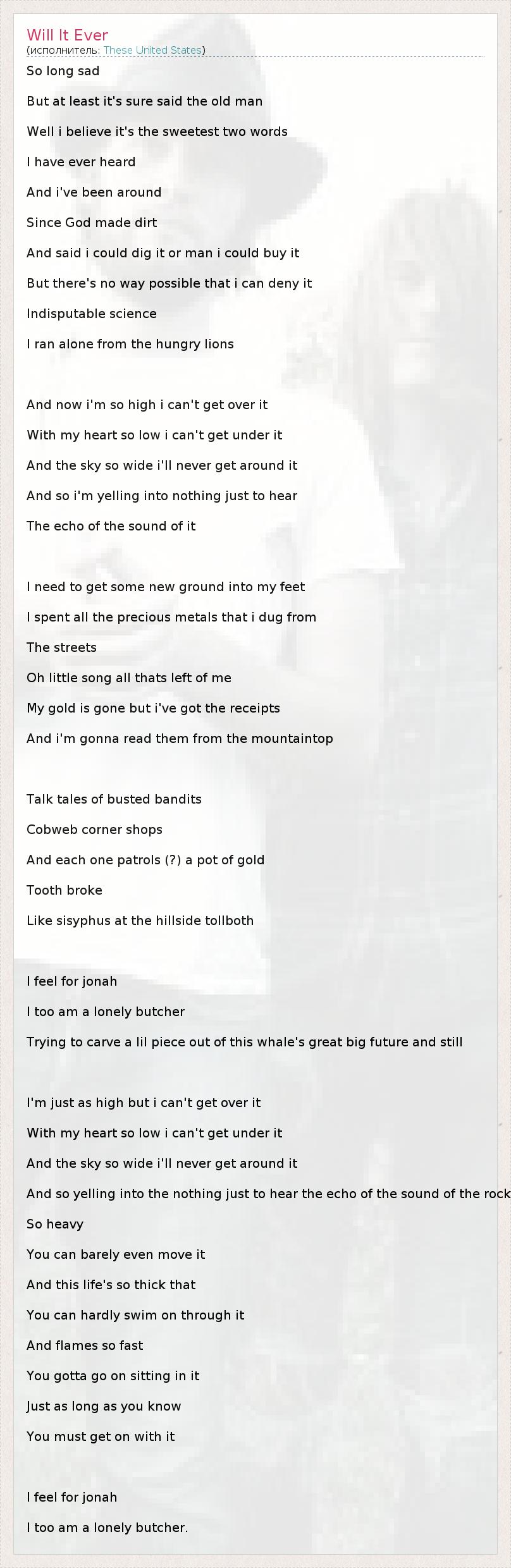 А как ты думаешь, о чем песня "Will It Ever" ?