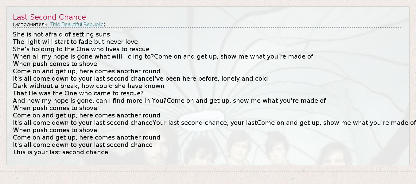 А как ты думаешь, о чем песня "Last Second Chance" ?