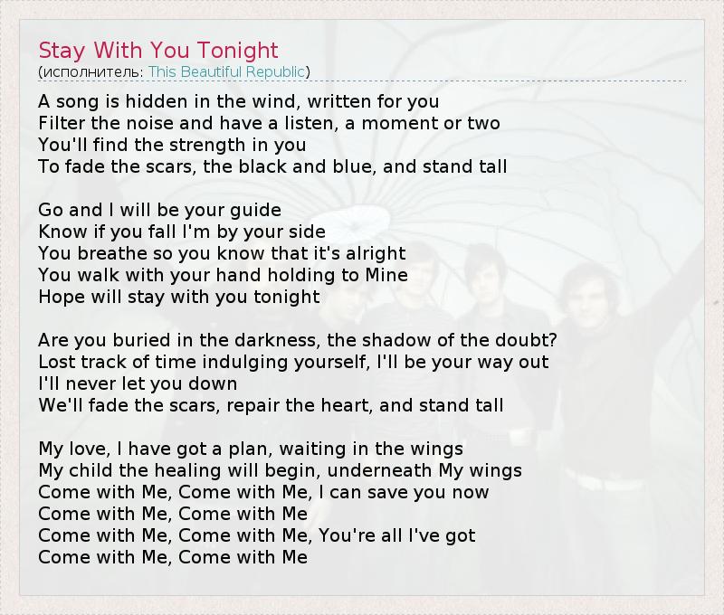 А как ты думаешь, о чем песня "Stay With You Tonight" ?