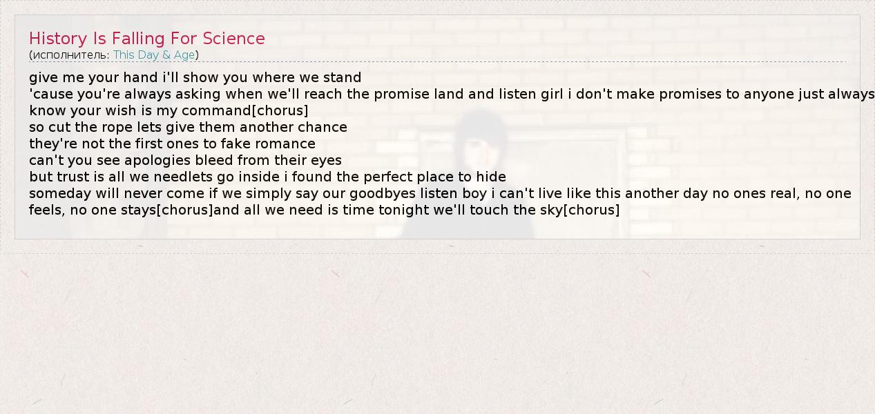 ГлавнаяИсполнителиThis Day & AgeHistory Is Falling For Science