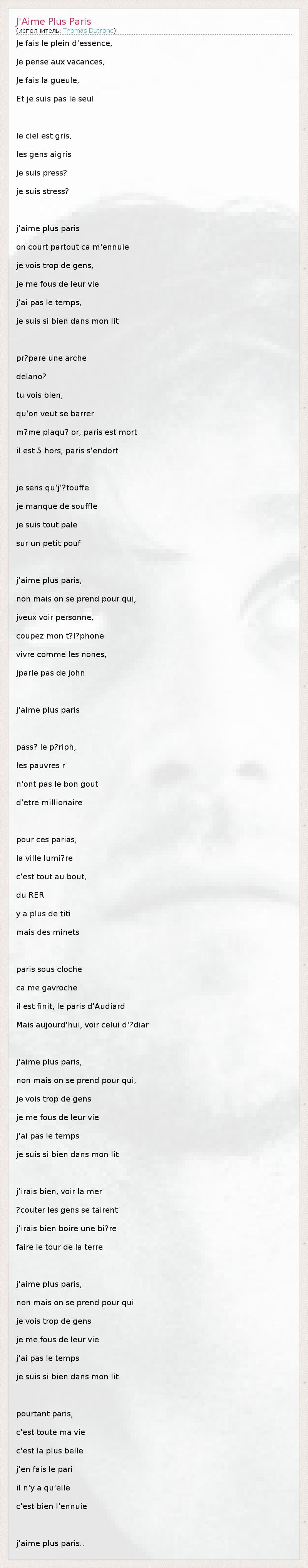 А как ты думаешь, о чем песня "J'Aime Plus Paris" ?