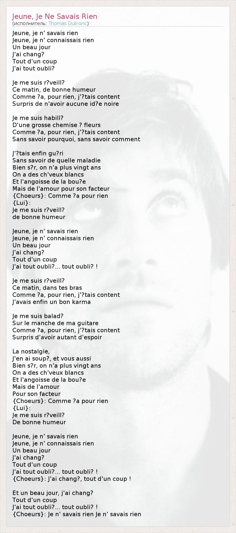 А как ты думаешь, о чем песня "Jeune, Je Ne Savais Rien" ?