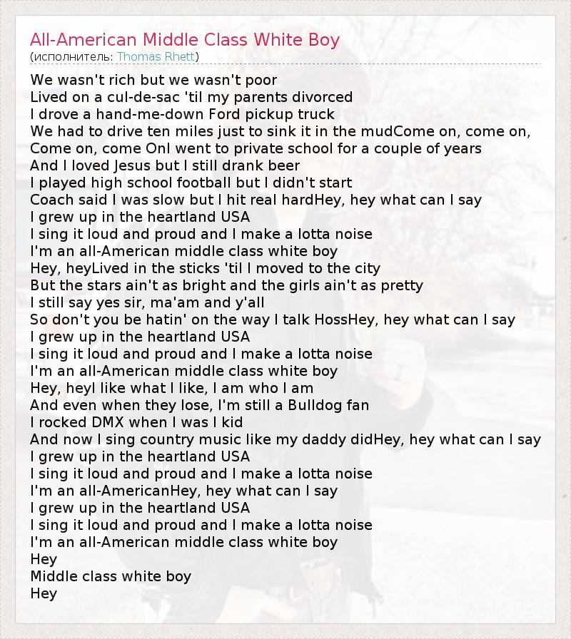 А как ты думаешь, о чем песня "All-American Middle Class White Boy" ?