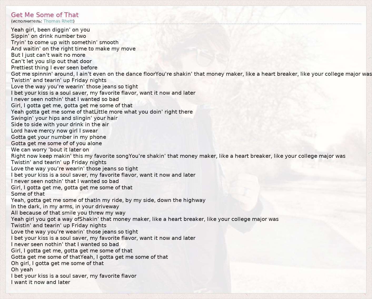 А как ты думаешь, о чем песня "Get Me Some of That" ?