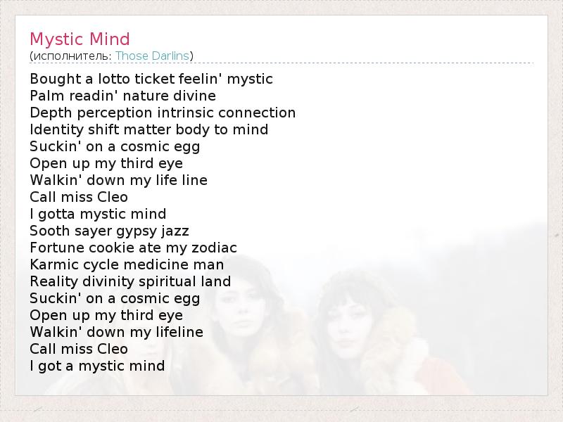А как ты думаешь, о чем песня "Mystic Mind" ?