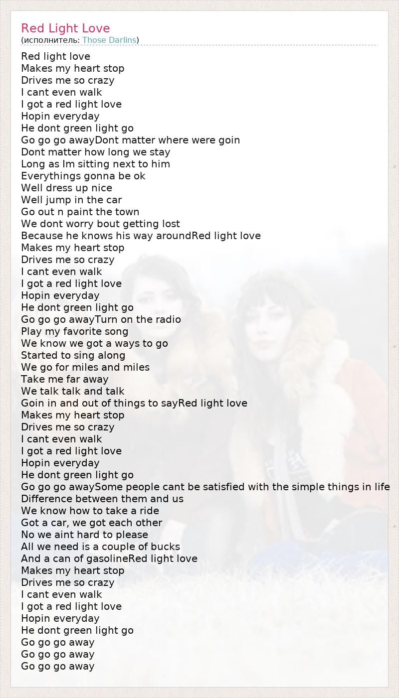 А как ты думаешь, о чем песня "Red Light Love" ?