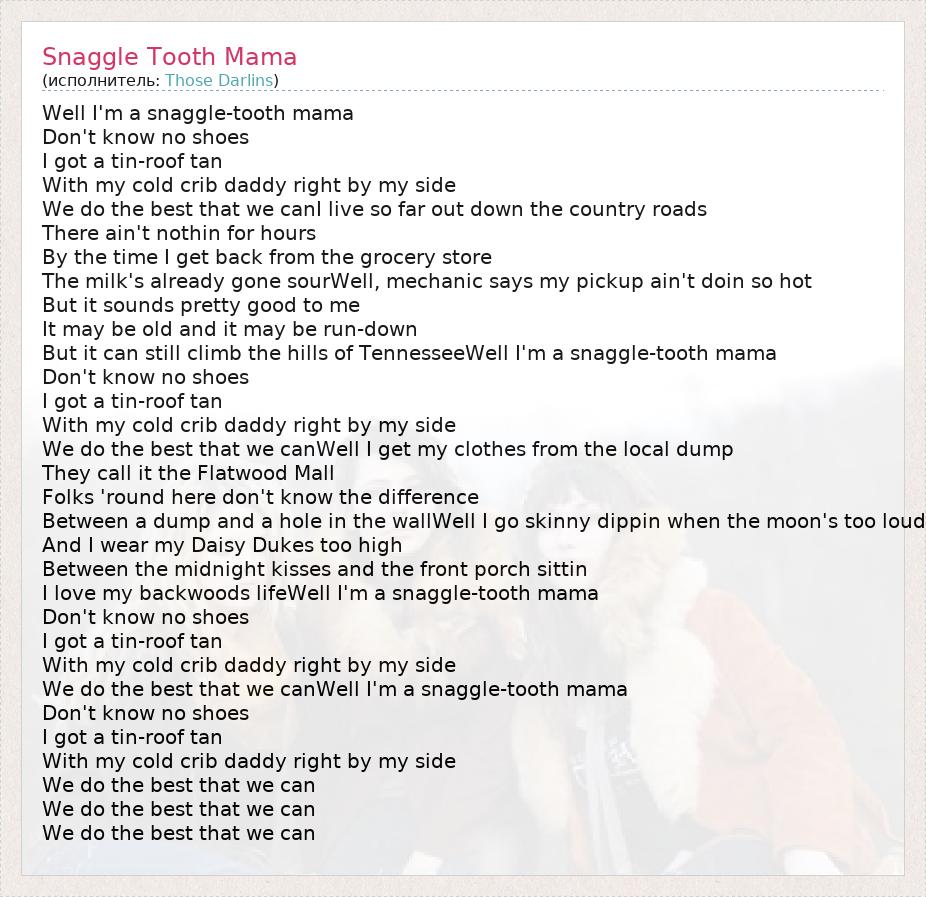А как ты думаешь, о чем песня "Snaggle Tooth Mama" ?