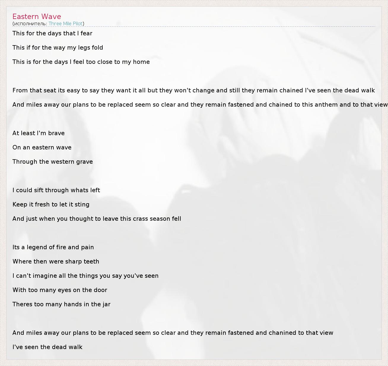 А как ты думаешь, о чем песня "Eastern Wave" ?