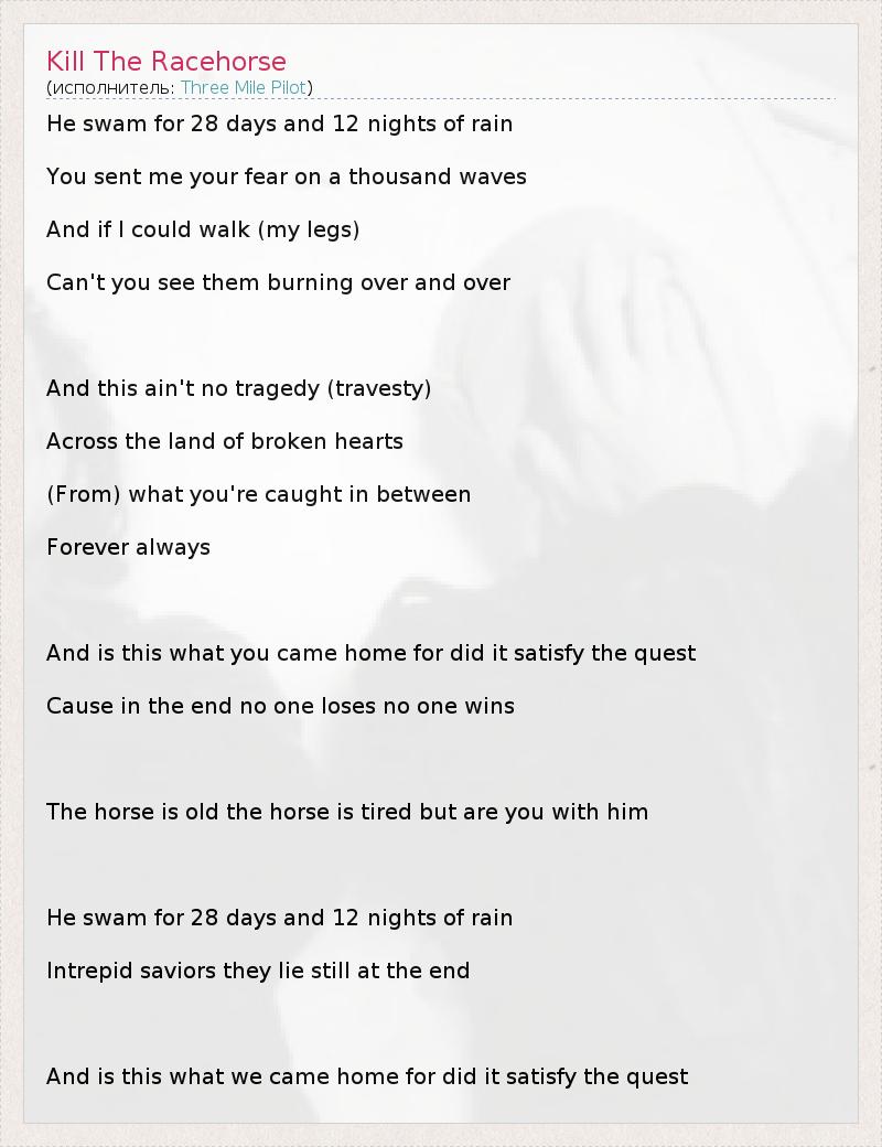 А как ты думаешь, о чем песня "Kill The Racehorse" ?