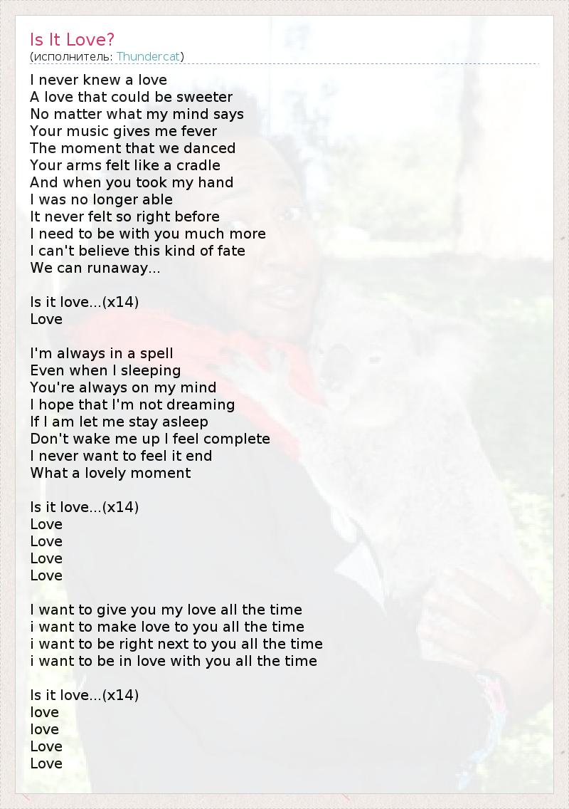 А как ты думаешь, о чем песня "Is It Love?" ?