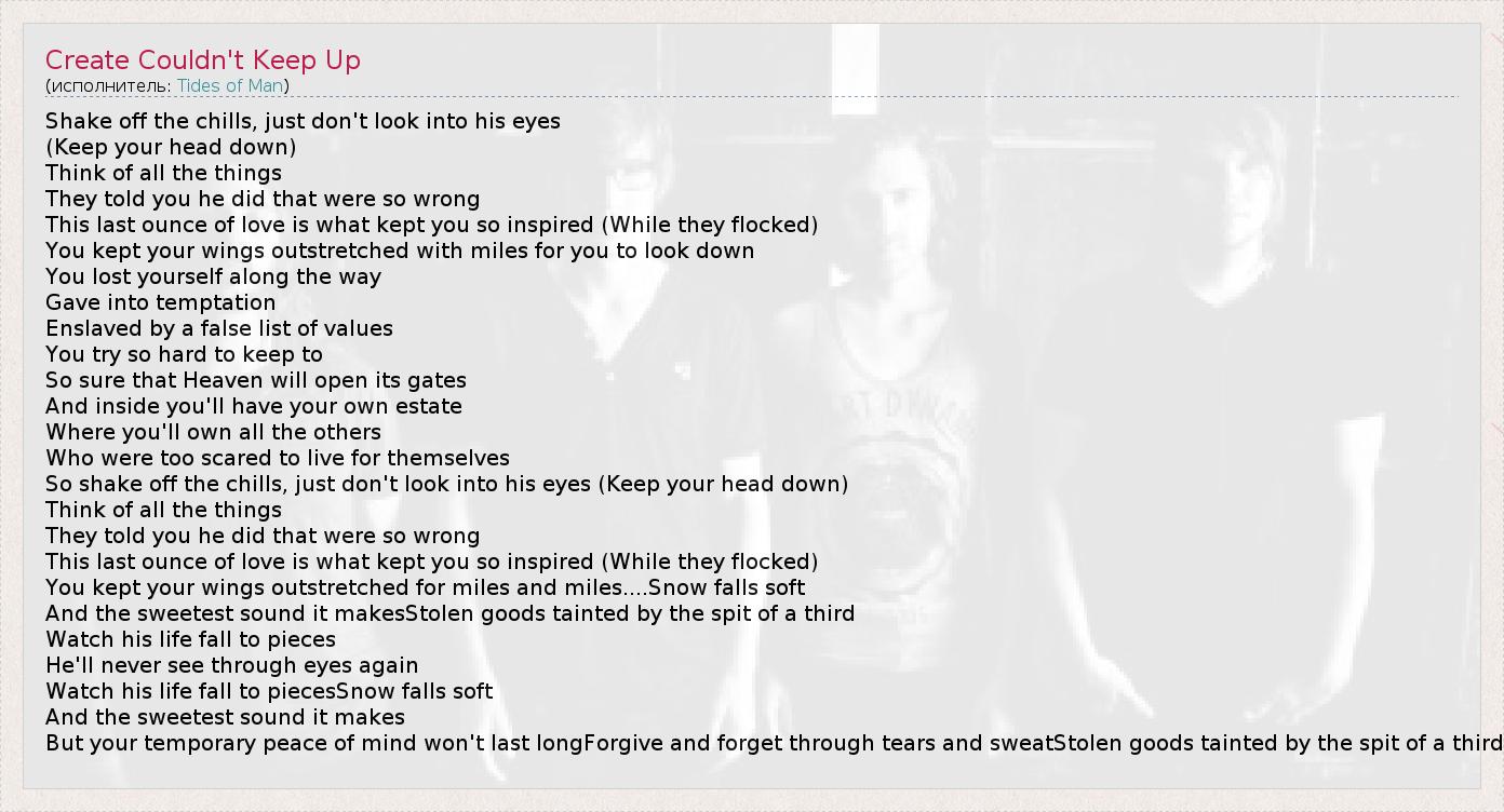 А как ты думаешь, о чем песня "Create Couldn't Keep Up" ?
