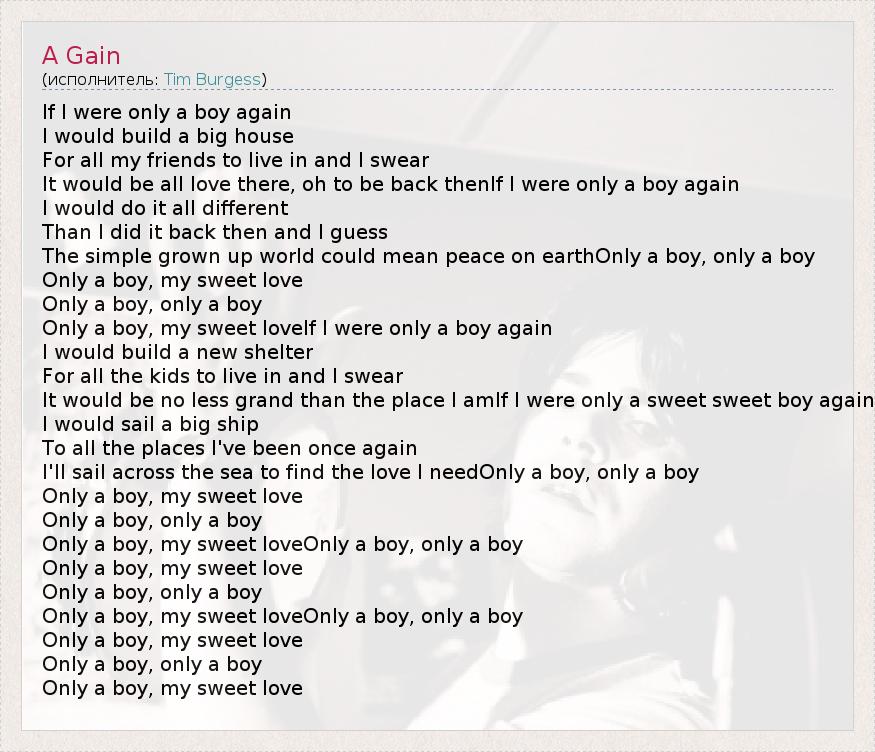 I'll sail across the sea to find the love I needOnly a boy, only a boy