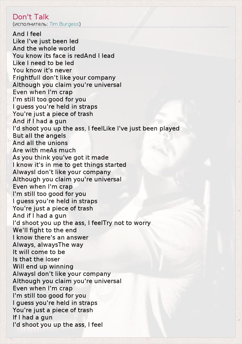 А как ты думаешь, о чем песня "Don't Talk" ?