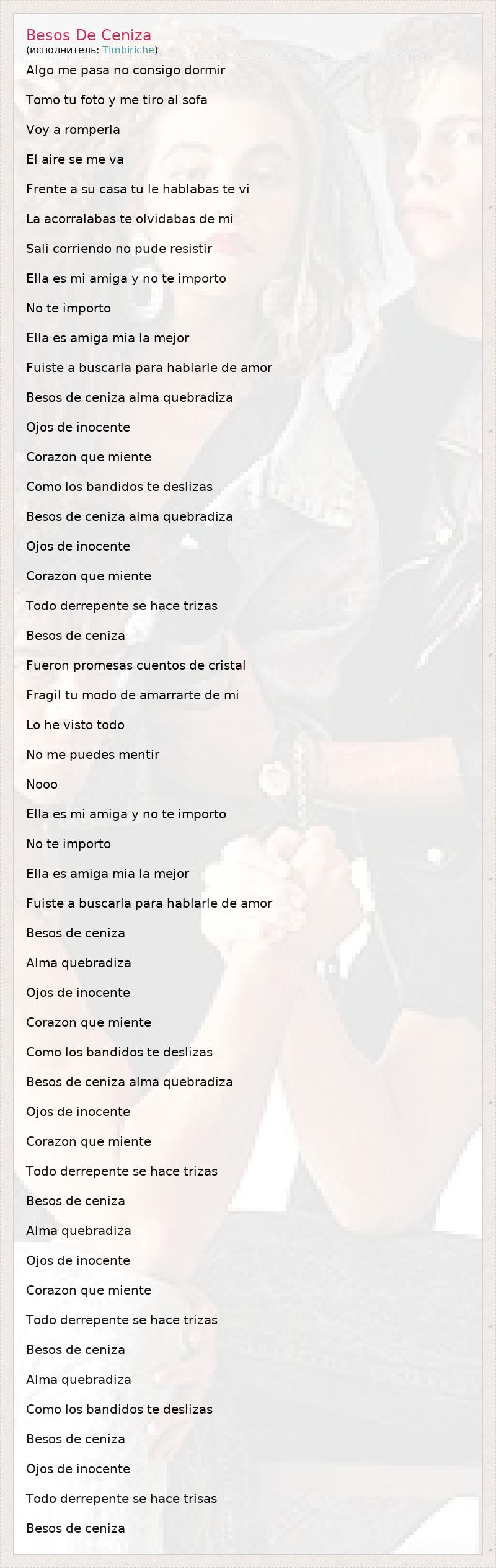 А как ты думаешь, о чем песня "Besos De Ceniza" ?