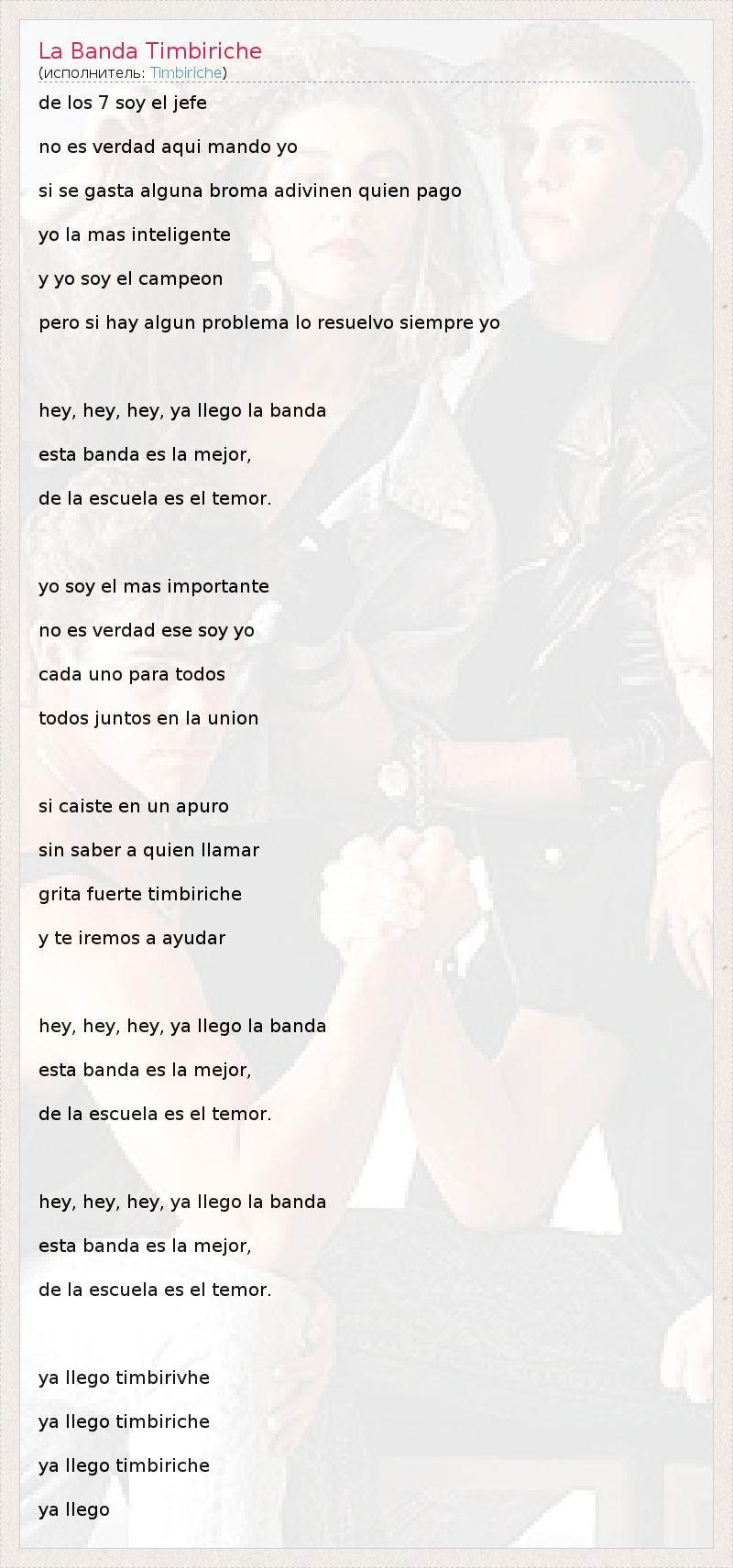 А как ты думаешь, о чем песня "La Banda Timbiriche" ?