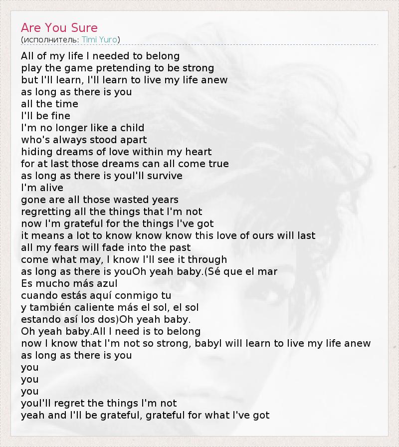 А как ты думаешь, о чем песня "Are You Sure" ?