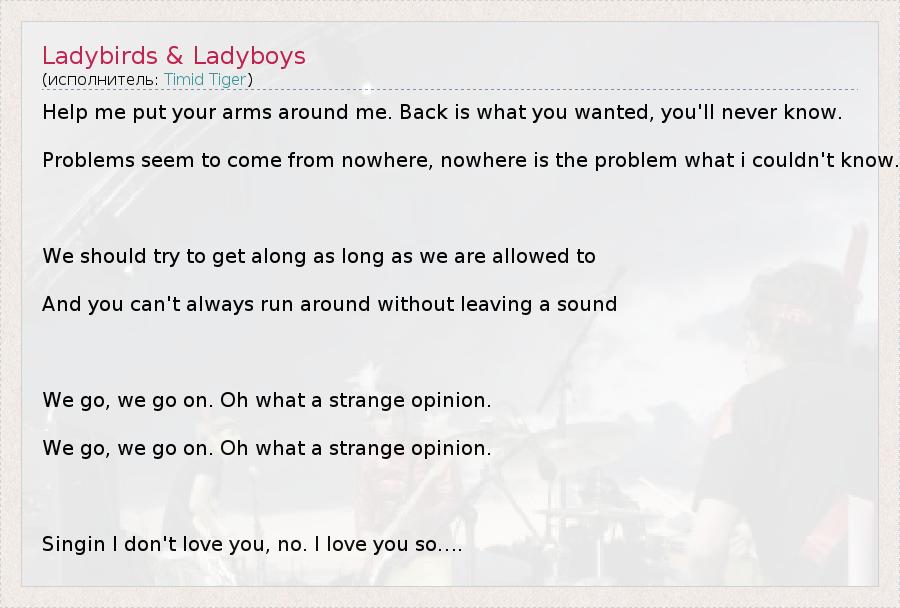 А как ты думаешь, о чем песня "Ladybirds & Ladyboys" ?